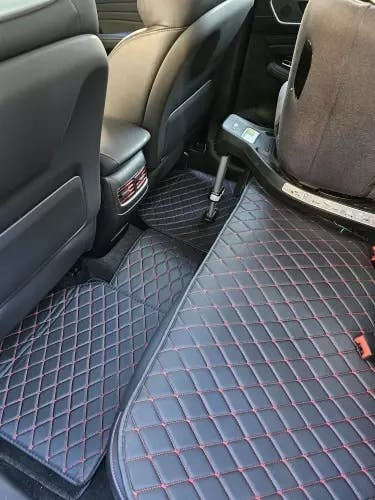 Skin-friendly frosted texture to lie comfortably in the leather. These mats' sleek leather design enhances the overall style of your car’s cabin. They add a refined, upscale look that complements modern and classic interiors.